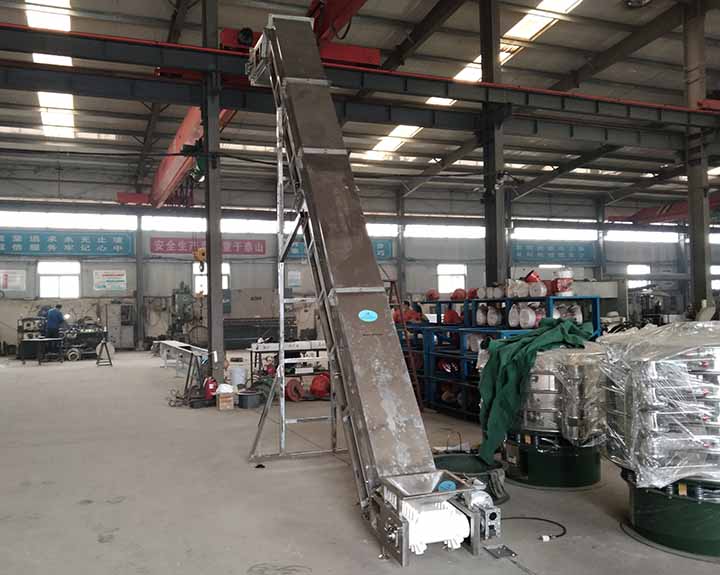 大傾角皮帶機(jī)使用的裙邊皮帶是在普通皮帶基礎(chǔ)上衍生出來(lái)的,所以它具有普通皮帶的所有優(yōu)點(diǎn),使用擋邊皮帶的大傾角皮帶機(jī)結(jié)構(gòu)和普通皮帶機(jī)基本相似。