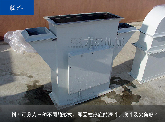 提升機(jī)的盛料構(gòu)件,根據(jù)運(yùn)送物料的性質(zhì)和提升機(jī)的結(jié)構(gòu)特點(diǎn),料斗可分為三種不同的形式,即圓柱形底的深斗、淺斗及尖角形斗。深斗適合于松散物料,淺斗適合輸送粘性較大的物料,三角斗適合比重大且成塊狀的物料。