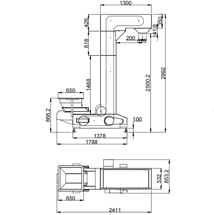 鏈條式Z型輸送機(jī)通常配備板鏈或附件鏈條,較高的承載能力和抗沖擊性能。輸送高度范圍可達(dá)2-15米以上,常用鏈條寬度為300–600mm,載重能力可達(dá)2t/h以上,適用于生產(chǎn)線負(fù)荷大、袋體較重或大容量液體袋的液體包裝場(chǎng)景。