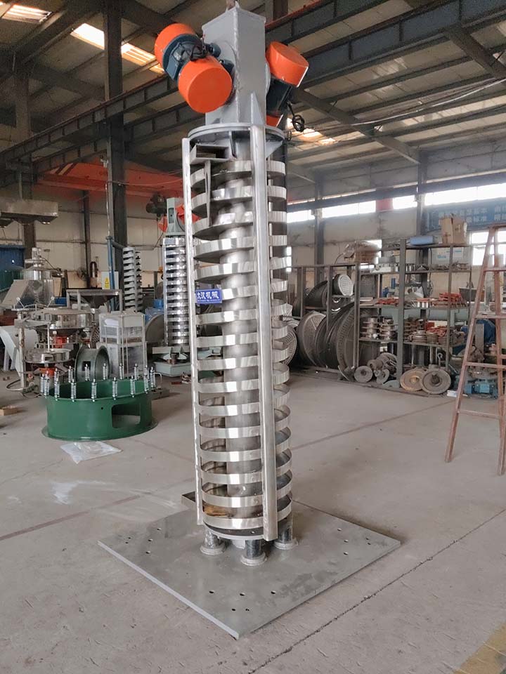 不銹鋼垂直振動提升機(jī)是對食品、醫(yī)藥等對衛(wèi)生要求比較嚴(yán)格、或者是有腐蝕性的顆粒狀、塊狀、粉狀的固體物料的輸送,是我廠生產(chǎn)的一種新型的垂直振動輸送設(shè)備。采用振動電機(jī)作振動源,利用兩振動電機(jī)的合成振幅,將物料沿螺旋輸送槽向上輸送。