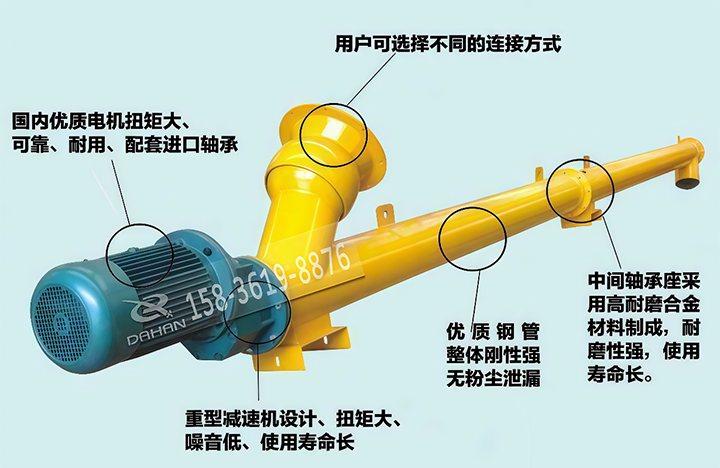 絞龍螺旋輸送機是我公司采用優(yōu)質(zhì)鋼材制造的高品質(zhì)物料輸送設備,先進的雙節(jié)距葉片設計可減少物料輸送過程的壓縮程度,優(yōu)質(zhì)的重型減速箱設計,具有轉(zhuǎn)矩大、噪音低等優(yōu)點,是攪拌站的配套設備。